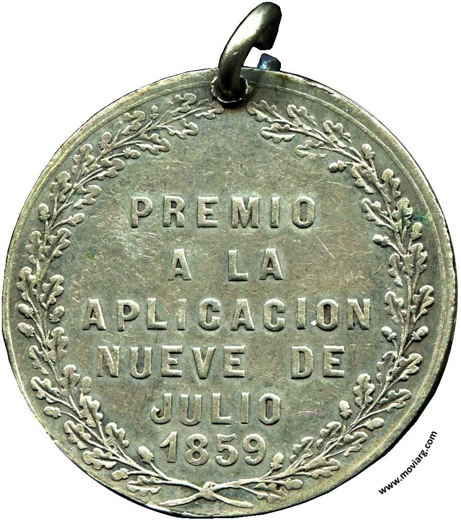 Anverso: MUNICIPALIDAD DE / BUENOS AIRES Reverso: PREMIO / A LA / APLICACION / NUEVE DE / JULIO / 1859 Referencia: | |