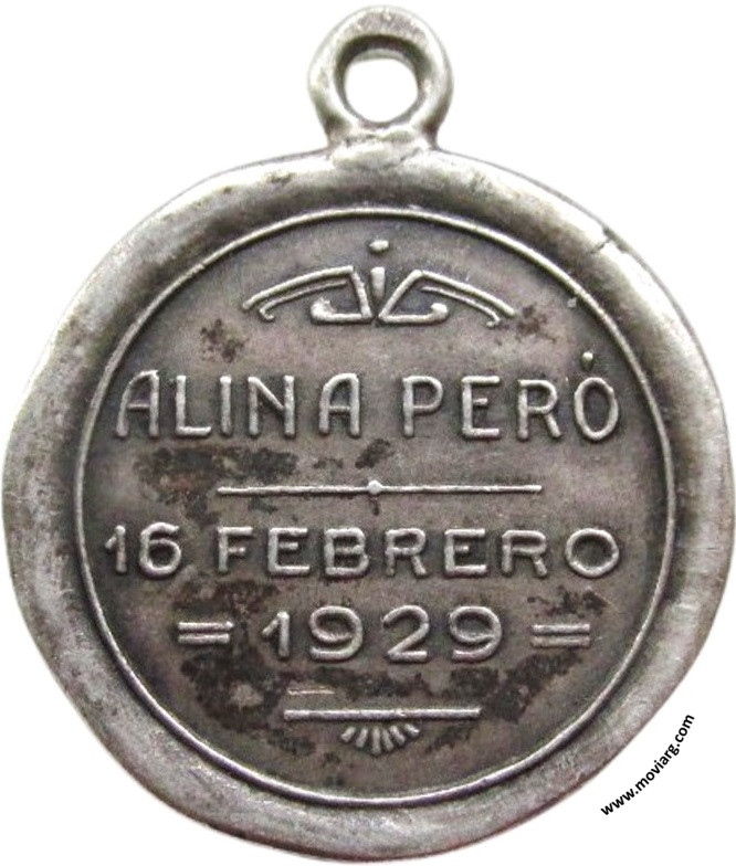 Anverso: Firma: HORTA Y CIA. Exergo: [ PLATA ] Reverso: ALINA PERÓ / 16 FEBRERO / 1929 Referencia: | |