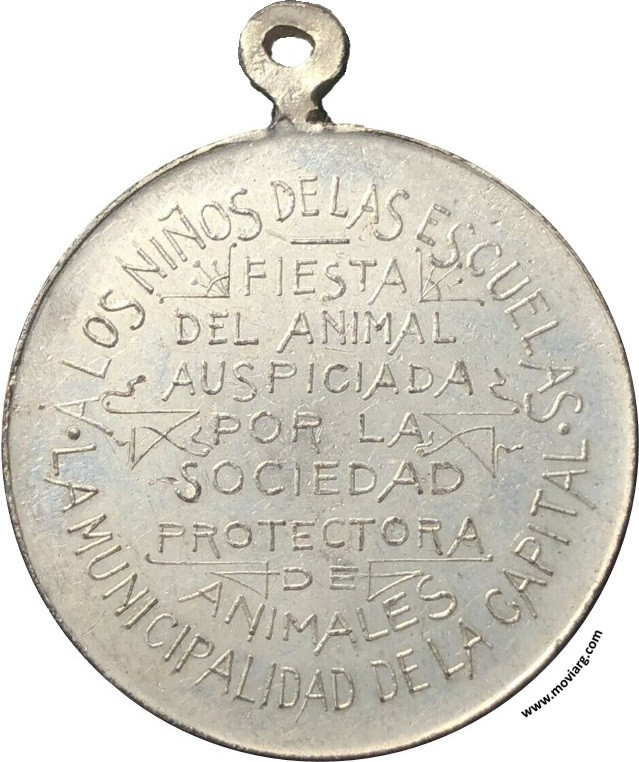 Anverso: JARDIN ZOOLÓGICO. / XXIX ABRIL / MCMVIII. Firma: BELLAGAMBA Y ROSSI Reverso: A LOS NIÑOS DE LAS ESCUELAS / LA MUNICIPALIDAD DE LA CAPITAL / FIESTA / DEL ANIMAL / AUSPICIADA / POR LA / SOCIEDAD / PROTECTORA / DE / ANIMALES Referencia: | |