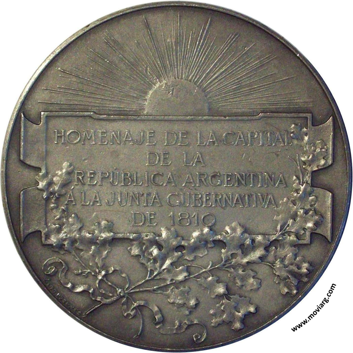 Anverso: MORENO / 25 DE MAYO 1910. Exergo: M. BLAY ESC. Reverso: HOMENAJE DE LA CAPITAL / DE LA / REPÚBLICA ARGENTINA / Á LA JUNTA GUBERNATIVA / DE 1810. Firma: GOTTUZZO Y CA. Canto: Liso. PLATA Referencia: | |