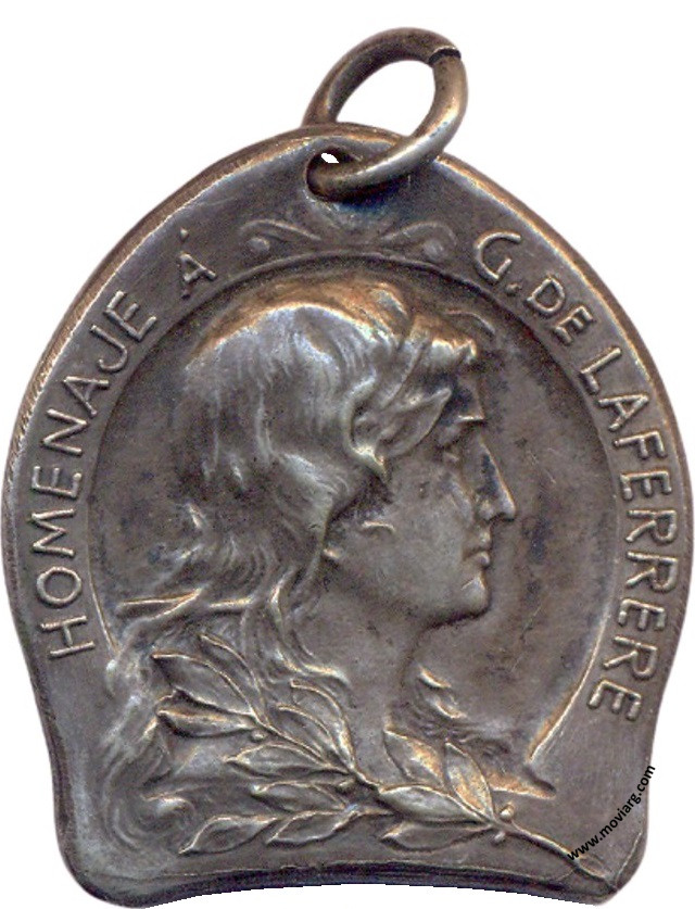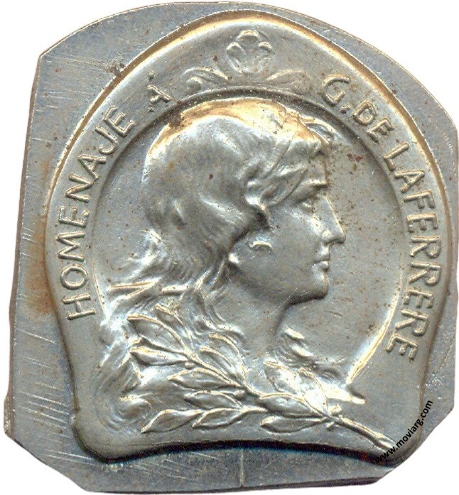 Anverso: HOMENAJE Á / G. DE LAFERRERE Reverso: TEATRO MODERNO / EMPRESA / LOPEZ - ESTEVAN / LAS DE BARRANCO / 100 REPRESENTACIONES / CONSECUTIVAS / 13 JULIO 1908 / BOS. AIRES Referencia: | |