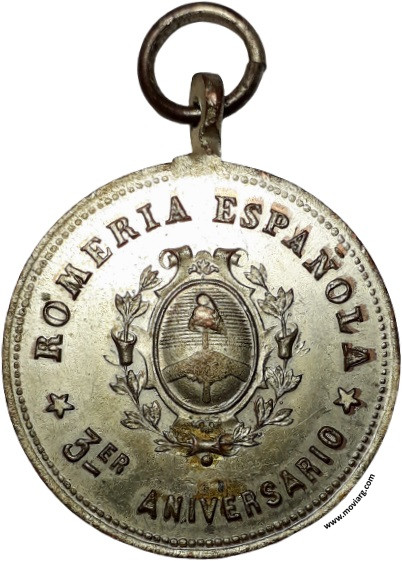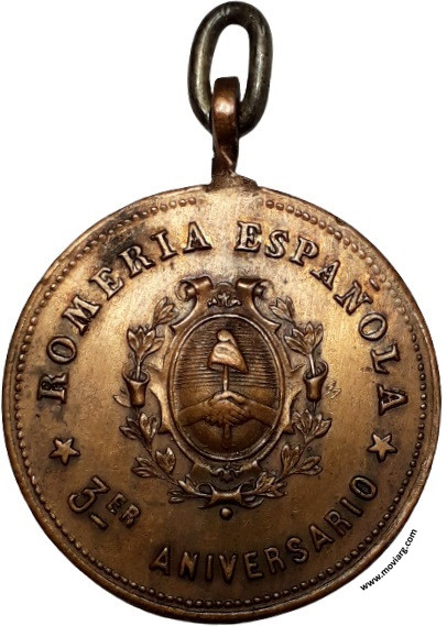 Anverso: ROMERIA ESPAÑOLA / 3ER. ANIVERSARIO Reverso: SAN NICOLAS / 13 OCTUBRE 1892 Referencia: | |