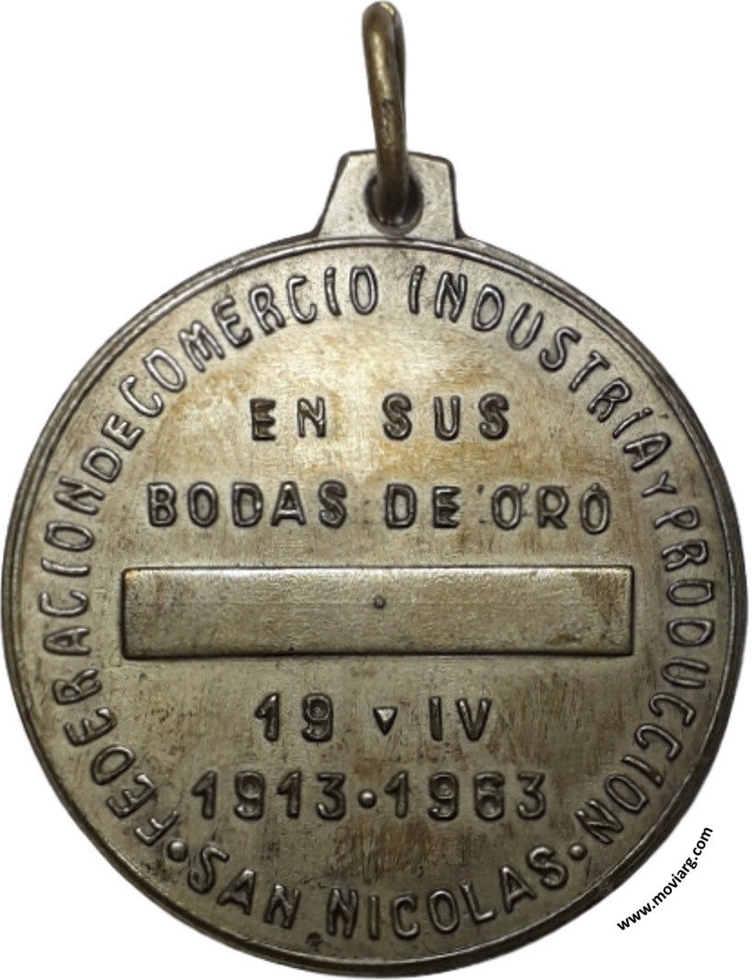 Anverso: Firma: O. GALLO Reverso: FEDERACION DE COMERCIO INDUSTRIA Y PRODUCCION / EN SUS / BODAS DE ORO / 19 ∇ IV / 1913 · 1963 / SAN NICOLAS Referencia: | |