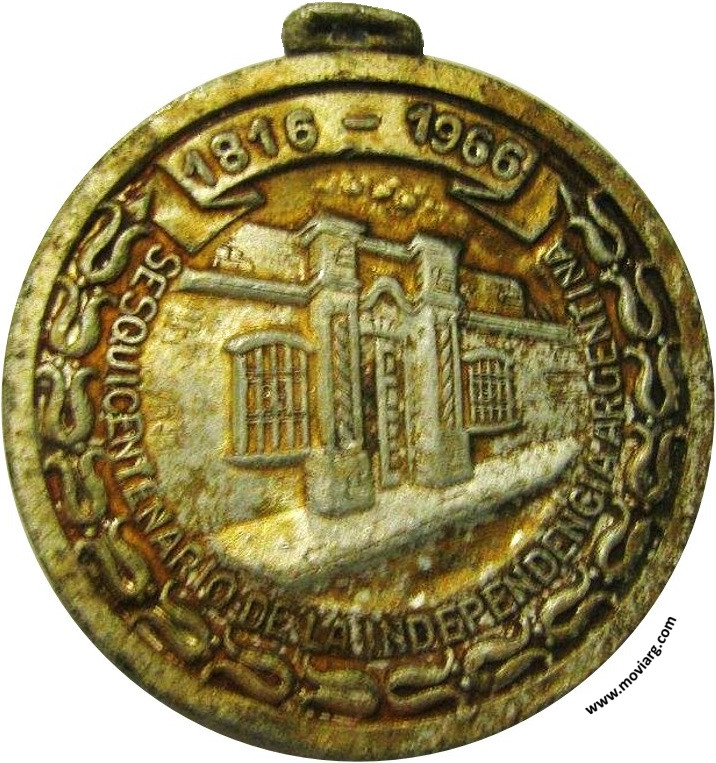 Anverso: 1816 - 1966 / SESQUICENTENARIO DE LA INDEPENDENCIA ARGENTINA Reverso: ADHESION / JOYERIA / SOLMAR / TUCUMAN Referencia: | |