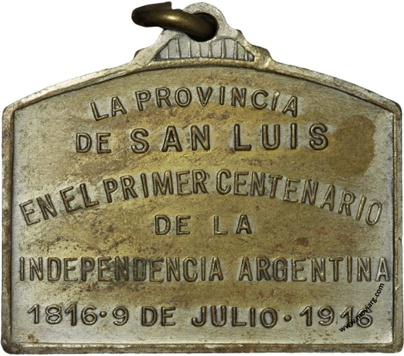 Anverso: Firma: C. ROSSI Reverso: LA PROVINCIA / DE SAN LUIS / EN EL PRIMER CENTENARIO / DE LA / INDEPENDENCIA ARGENTINA / 1816 · 9 DE JULIO · 1916 Referencia: | |