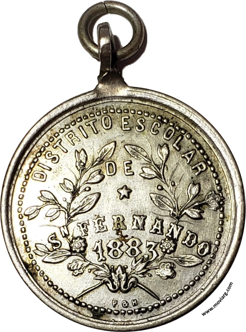 Anverso: A LA INTELIGENCIA. Campo: LA / EDUCACION / CIVILIZA / LOS / PUEBLOS / RIV. Firma: P. & H. Reverso: DISTRITO ESCOLAR / DE / SN. FERNANDO / 1883. Firma: P. & H. Referencia: | |