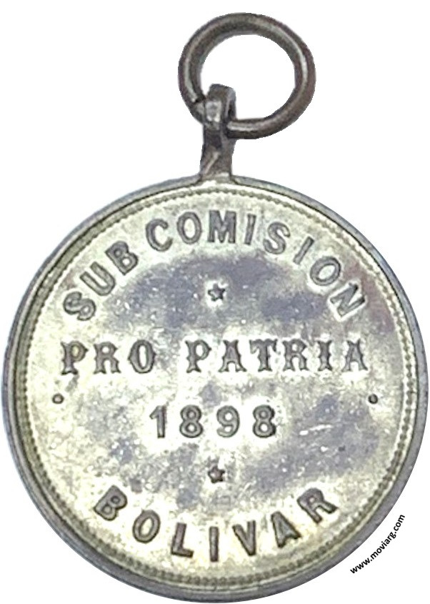 Anverso: ASOCIACION PATRIOTICA ARGENTINA. Firma: ORZALI B. Y C. Reverso: SUB COMISIÓN / PRO PATRIA / 1898 / BOLIVAR Canto: Liso Referencia: | |