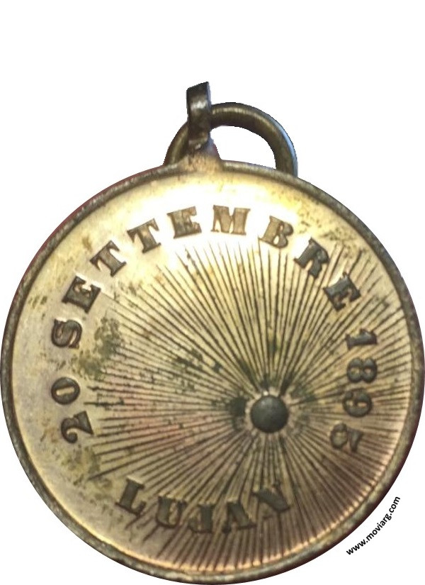 Anverso: 20 SETTEMBRE 1895 / LUJAN Reverso: COMMEMORAZIONE DEL XXV ANNIVERSARIO / DELLA LIBERAZIONE DI ROMA. Firma: PODESTA & H. Referencia: | |