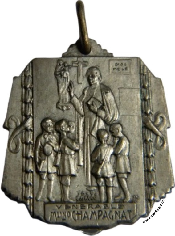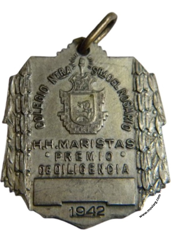 Anverso: VENERABLE / MLINO. CHAMPAGNAT. Firma: TALL. / O. GALLO. Campo: DIOS / ME VE Reverso: COLEGIO NTRA. / SRA. DEL ROSARIO / H. H. MARISTAS / PREMIO / DE DILIGENCIA / [ 1942 ] Referencia: | |