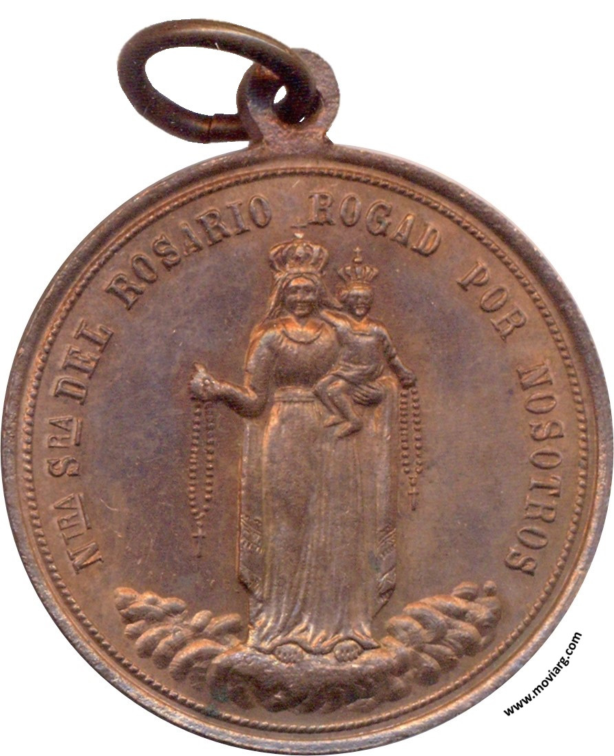 Anverso: NTRA. SRA. DEL ROSARIO ROGAD POR NOSOTROS Reverso: CONSAGRACION DE LA IGLESIA PARROQUIAL / DE CAFAYATE / POR EL / ILMO. OBISPO / DIOCESANO / DR. PABLO PADILLA / ENERO 4 / DE 1895 Referencia: | |