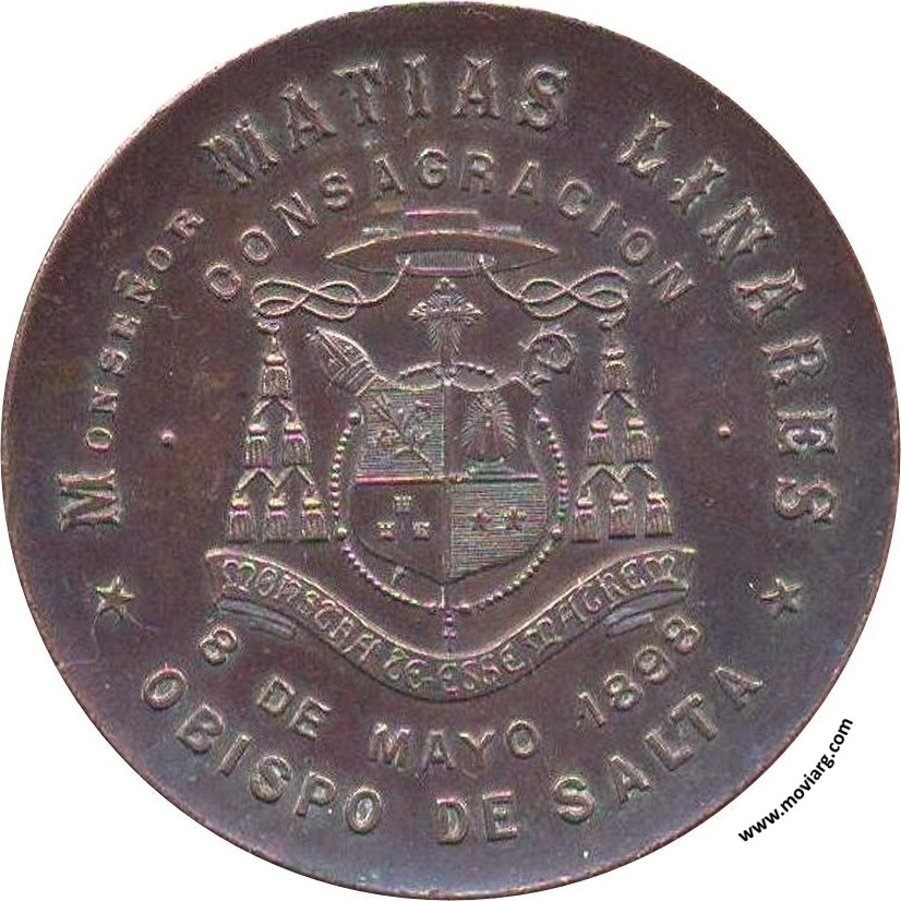 Anverso: Firma: ORZALI. B. Y C. / B. - AIRES Reverso: MONSEÑOR MATIAS LINARES / OBISPO DE SALTA / CONSAGRACION / 8 DE MAYO 1898. Campo: MONSTRA TE ESSE MATREM Referencia: | |