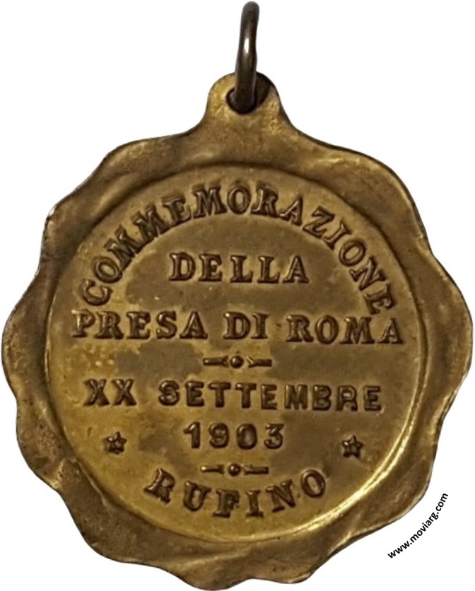 Anverso: ROMA INTANGIBLE. Firma: CASANOVAS Y HORTA Reverso: COMMEMORAZIONE / DELLA / PRESA DI ROMA / XX SETTEMBRE / 1903 / RUFINO Referencia: | |