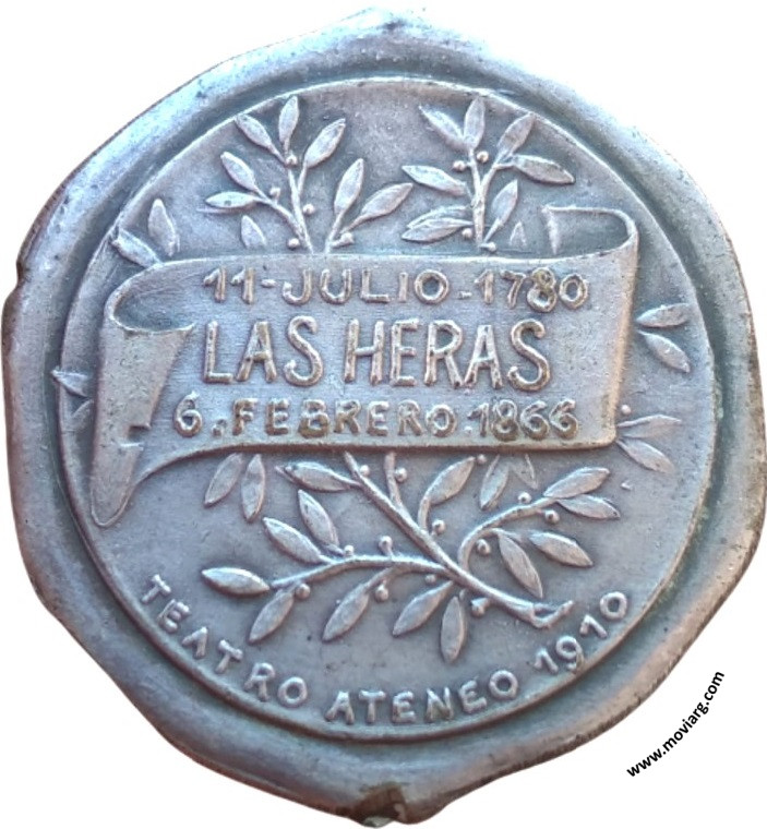 Anverso: Reverso: 11 - JULIO - 1780 / LAS HERAS / 6 . FEBRERO . 1866 / TEATRO ATENEO 1910 Referencia: | |