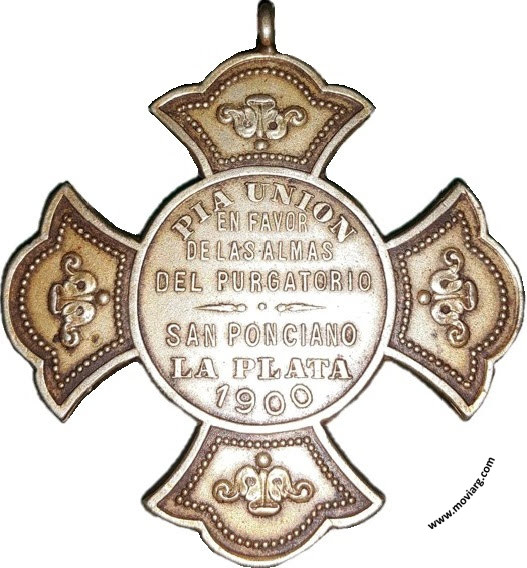Anverso: Firma: BELLAGAMBA Y ROSSI Reverso: PIA UNION / EN FAVOR / DE LAS ALMAS / DEL PURGATORIO / SAN PONCIANO / LA PLATA / 1900 Referencia: | |