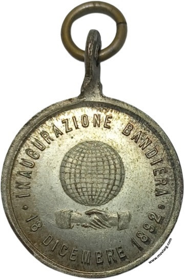 Anverso: INAUGURAZIONE BANDIERA / 18 DICEMBRE 1892 Reverso: SOCIETÁ FRATELLANZA ARTICIANA / BARRACAS AL NORD / DI MUTUO SOCCORSO / FONDATA / 1° GENNAJO 1891 Referencia: | |
