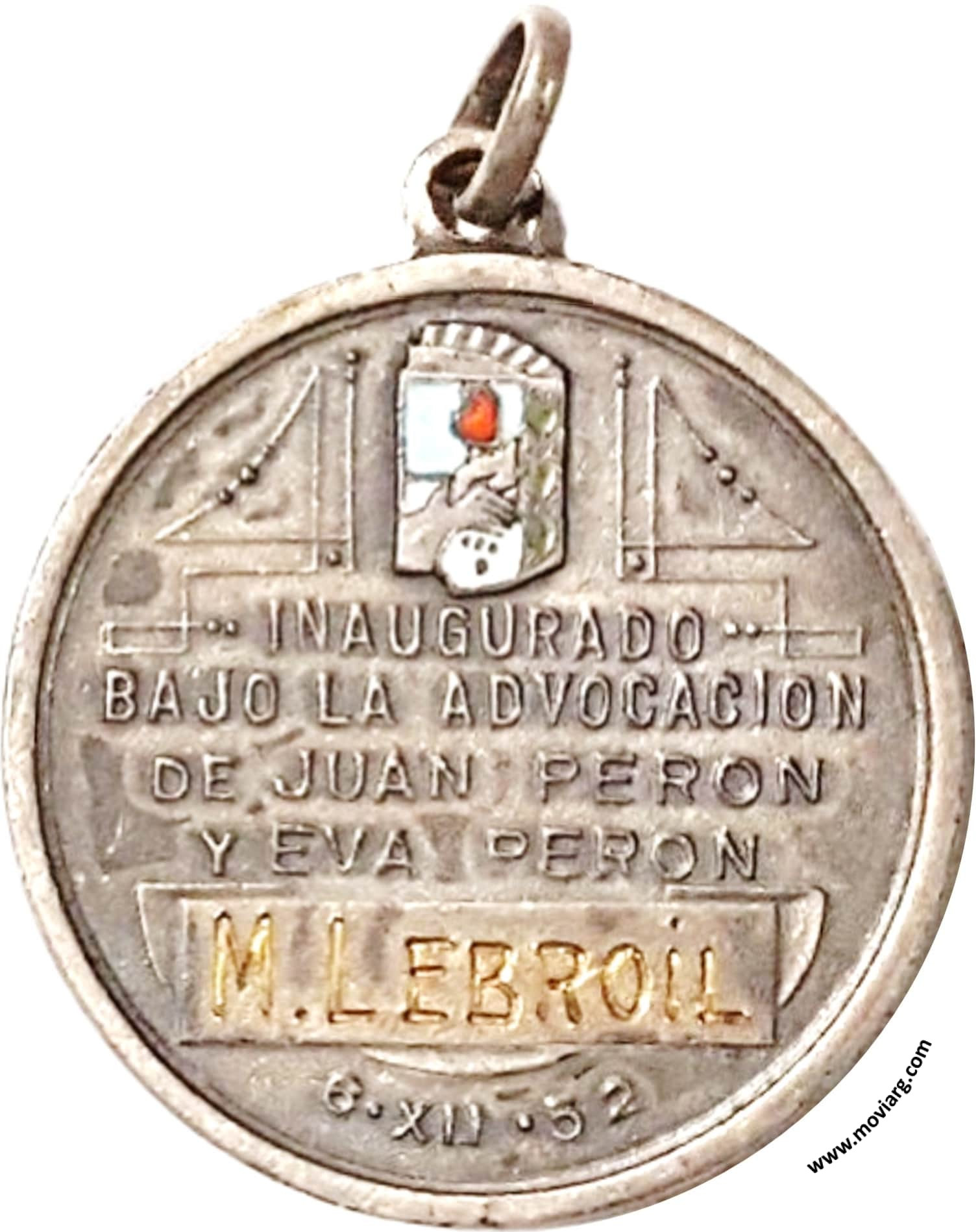Anverso: BANCO DE LA NACION ARGENTINA / SUCURSAL SAN ANDRES DE GILES Reverso: INAUGURADO / BAJO LA ADVOCACION / DE JUAN PERON / Y EVA PERON / [ M. LEBROIL ] / 6 · XII · 52 Referencia: | |