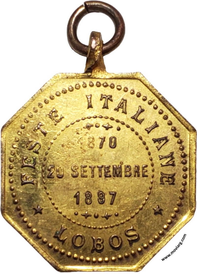 Anverso: FRATELLANZA ITALO ARGENTINA. Firma: L. BIANCHINI Reverso: FESTE ITALIANE / LOBOS / 1870 / 20 SETTEMBRE / 1897 Referencia: | |