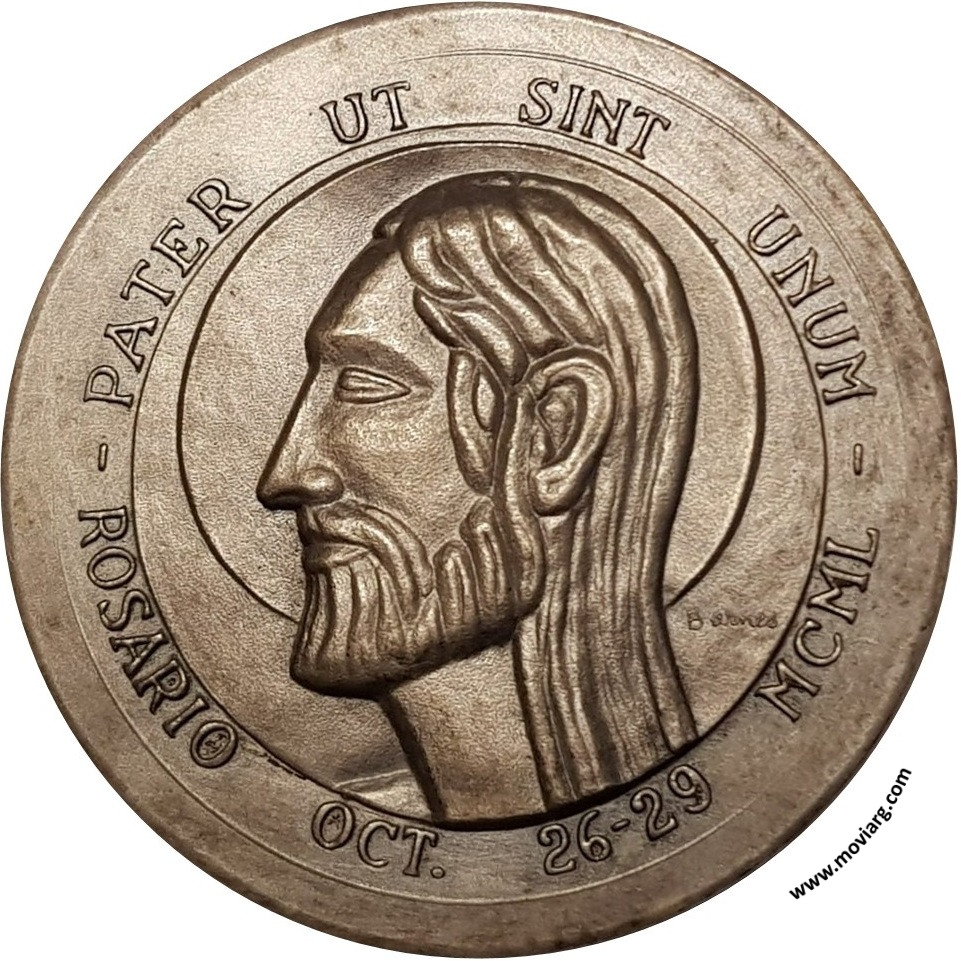 Anverso: PATER UT SINT UNUM / ROSARIO OCT. 26-29 MCML. Firma: BARNES Reverso: V° CONGRESO EUCARISTICO NACIONAL / REPUBLICA ARGENTINA. Firma: SUC. J. F. PIANA Referencia: | |