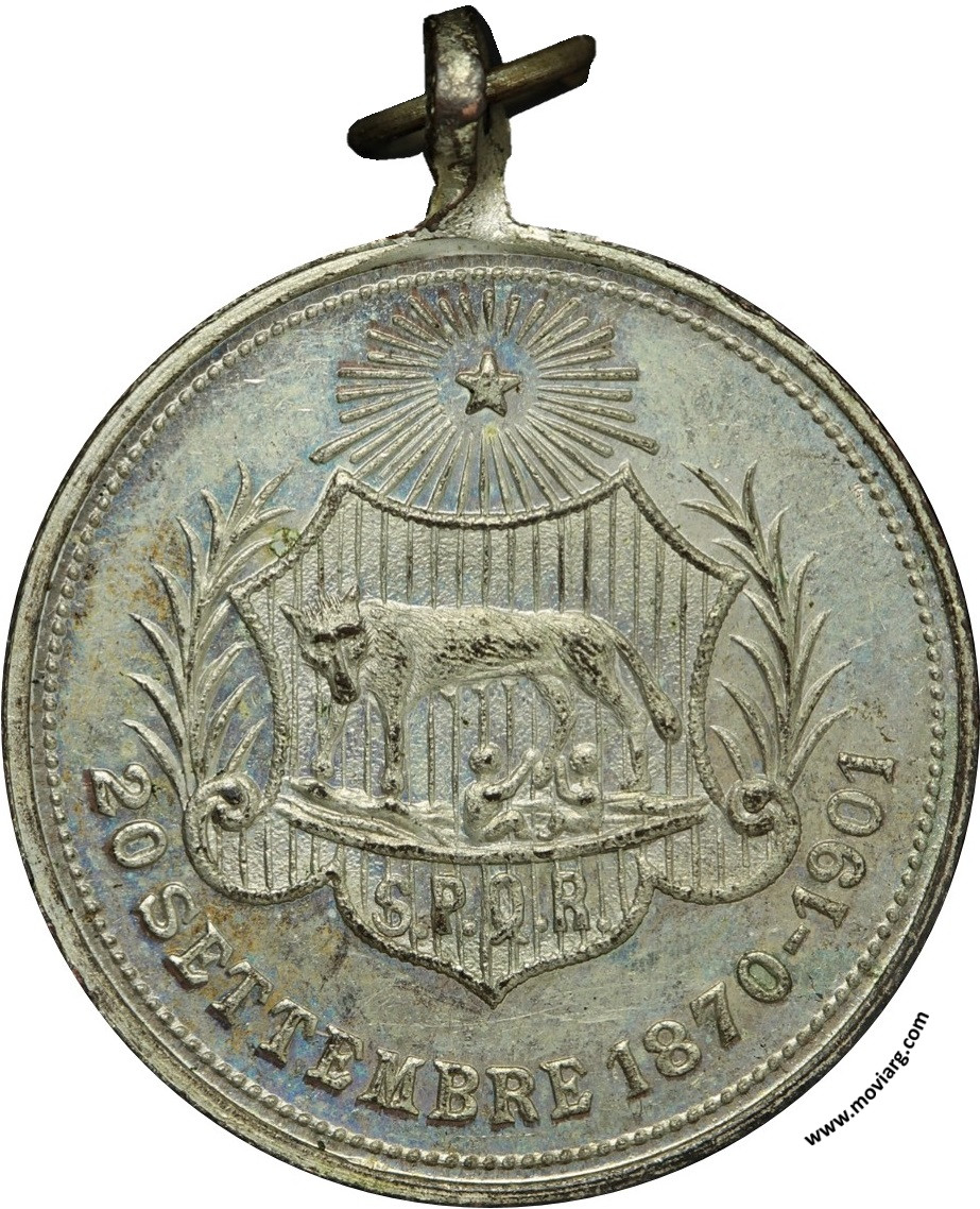 Anverso: PORTA - PIA / 1870. Firma: MOOS Y HUGNER (HUBNER) Reverso: 20 SETTEMBRE 1870 - 1901. Campo: S.P.Q.R. Referencia: | |