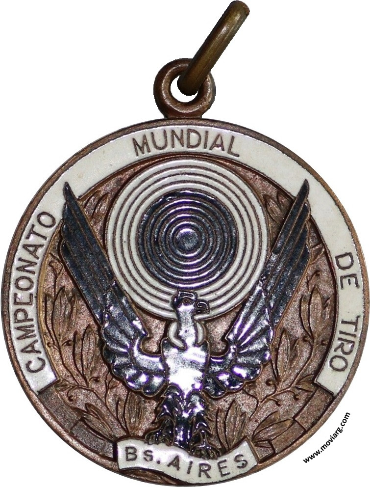 Anverso: CAMPEONATO MUNDIAL DE TIRO / BS. AIRES Reverso: [ CARABINA 22 ] / [ TENDIDO ] / PREMIO / 1949 Referencia: | |
