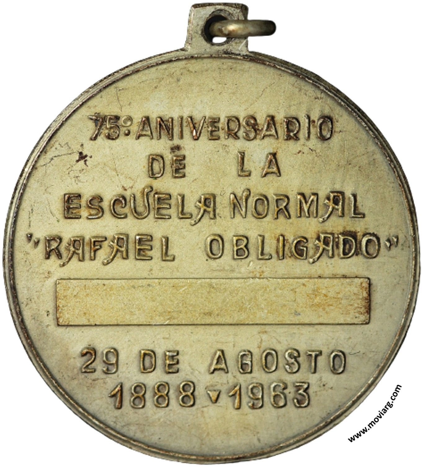 Anverso: FRANCISCA G. ARMSTRONG DE BESLER / DIRECTORA FUNDADORA. Firma: O. GALLO Reverso: 75° ANIVERSARIO / DE LA / ESCUELA NORMAL / " RAFAEL OBLIGADO " / 29 DE AGOSTO / 1888 - 1963 Referencia: | |