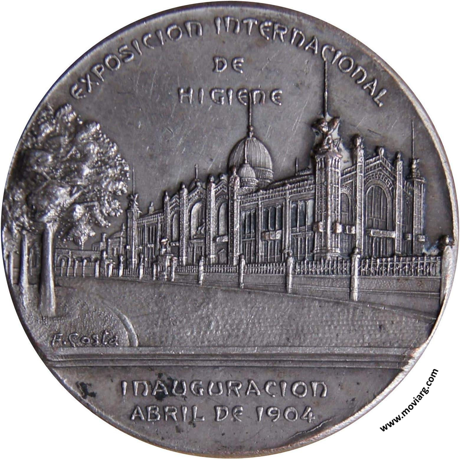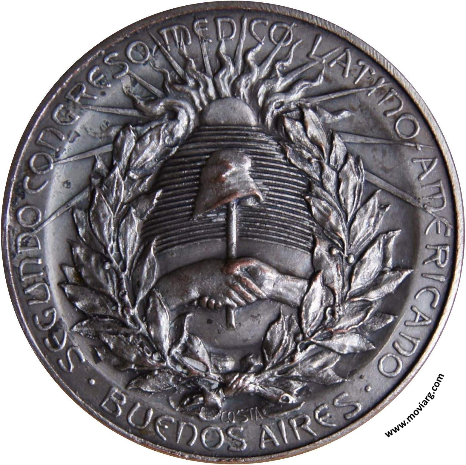 Anverso: SEGUNDO CONGRESO MEDICO LATINO AMERICANO / BUENOS AIRES. Firma: COSTA Reverso: EXPOSICION INTERNACIONAL / DE / HIGIENE / INAUGURACION / ABRIL DE 1904. Firma: F. COSTA Referencia: BURZIO-1445 | |