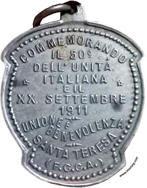 fb - E.K. Anverso:Reverso: COMMEMORANDO / IL 50° / DELL' UNITÁ / ITALIANA / E IL / XX SETTEMBRE / 1911 / UNIONE E / BENEVOLENZA / SANTA TERESA / ( F. C. C. A. ) Referencia: | |