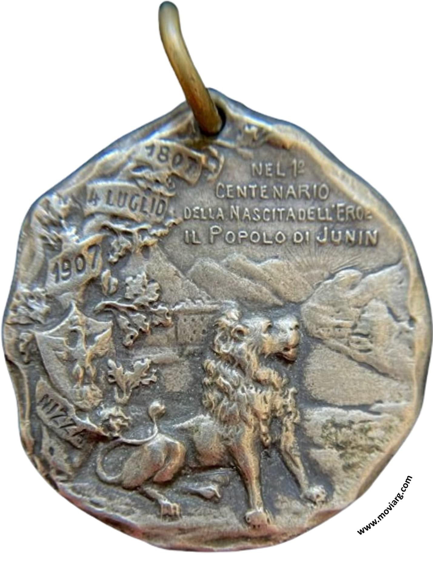 Anverso: GARIBALDI Reverso: NEL 1° / CENTENARIO / DELLA NASCITA DELL'EROE / IL POPOLO DI JUNIN. Campo: 1807 / 4 JULIO / 1907 / NIZZA Referencia: | |