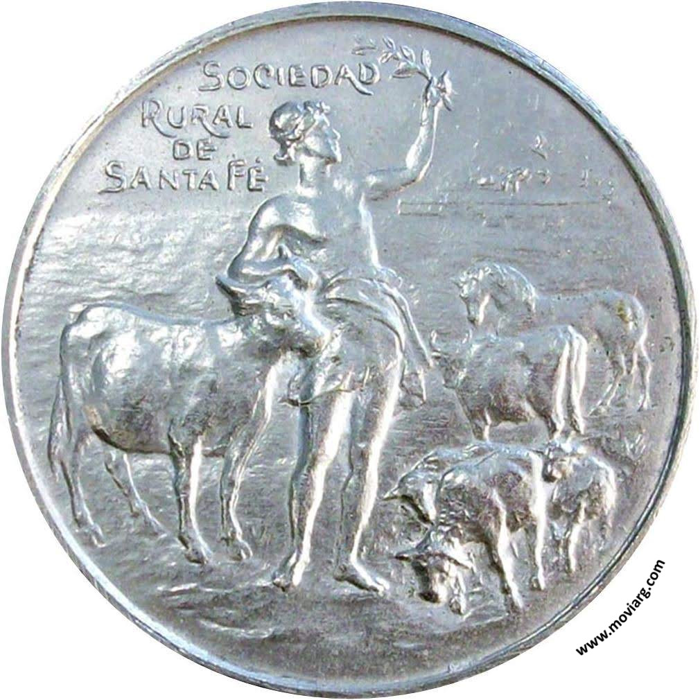 Anverso: SOCIEDAD / RURAL / DE / SANTA FÉ Reverso: EXPOSICION GANADERA É INDUSTRIAL / 1910. Firma: J. GOTTUZZO Referencia: | |