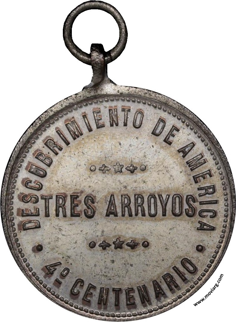 Anverso: 12 OCTUBRE 1892 Reverso: DESCUBRIMIENTO DE AMERICA / 4° CENTENARIO / TRES ARROYOS Referencia: | |