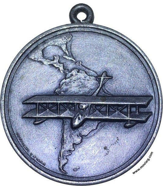 Colección Magnin Anverso: Firma: GOTTUZZO Y PIANAReverso: Canto: Nota Moviarg: Se desconoce el motivo de esta medalla, pero teniendo en cuenta que el avión representado se parece mucho al Hidroavión S 59 'Savoia' que fue diseñado por el ingeniero Marchetti y utilizado en el raid Nueva York-Buenos Aires la incluímos junto a la pieza de ese raid. Referencia: | |