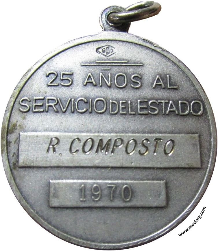 Anverso: ADMINISTRACION NACIONAL DE ADUANAS Reverso: 25 AÑOS AL / SERVICIO DEL ESTADO / [ R. COMPOSTO ] / 1970. Exergo: [ < 900 > ] Referencia: | |