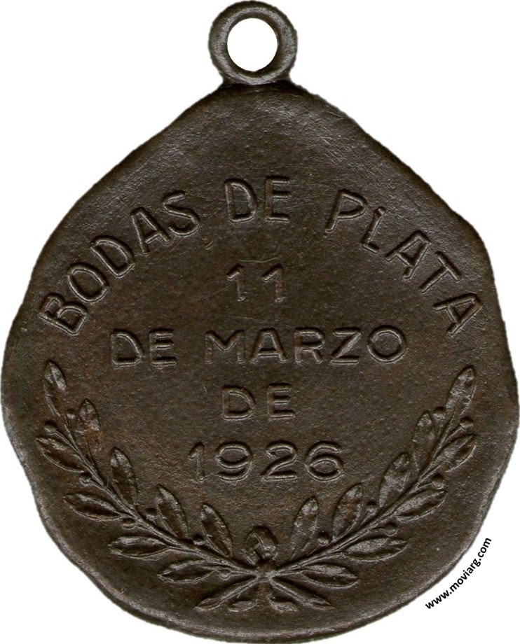 Anverso: SOCIEDAD / COSMOPOLITA / DE / SOCORROS MUTUOS / DE / VALENTIN ALSINA Reverso: BODAS DE PLATA / 11 / DE MARZO / DE / 1926 Referencia: | |