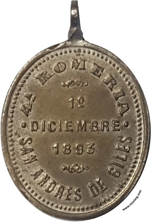 Anverso: SOCIEDAD ESPAÑOLA DE SOCORROS MUTUOS Reverso: 4A. ROMERIA / SAN ANDRES DE GILES / 1° DICIEMBRE / 1893 Referencia: | |
