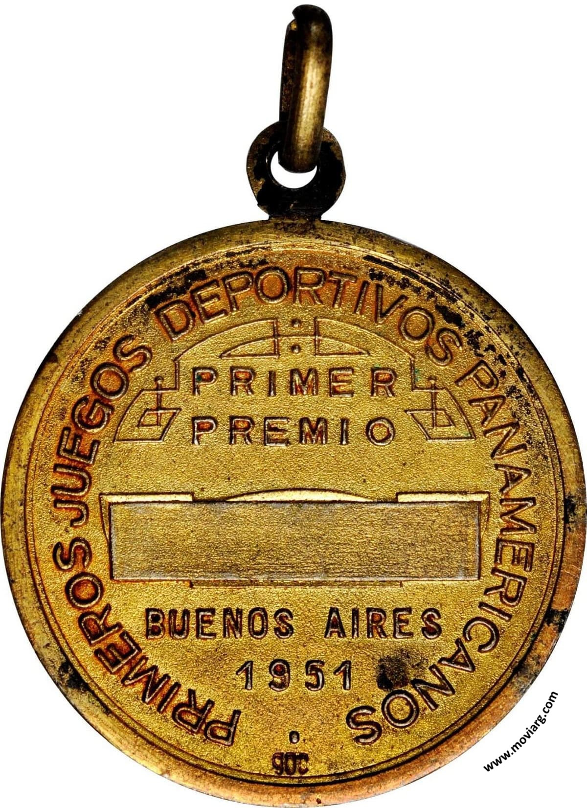 Anverso: Reverso: PRIMEROS JUEGOS DEPORTIVOS PANAMERICANOS / PRIMER / PREMIO / BUENOS AIRES / 1951. Campo: [ 900 ] Referencia: | |