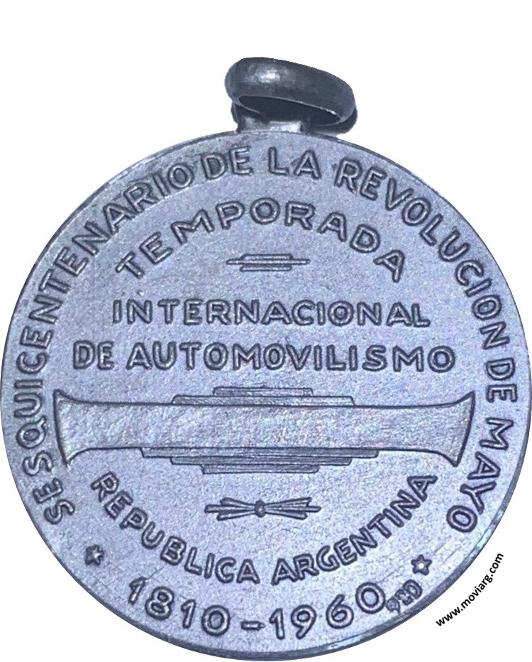 Colección Magnin Anverso: VIVA LA EXCELENTISIMA JUNTAReverso: SESQUICENTENARIO DE LA REVOLUCION DE MAYO / TEMPORADA / INTERNACIONAL / DE AUTOMOVILISMO / REPUBLICA ARGENTINA / 1810 - 1960. Exergo: [ 900 ] Referencia: | |