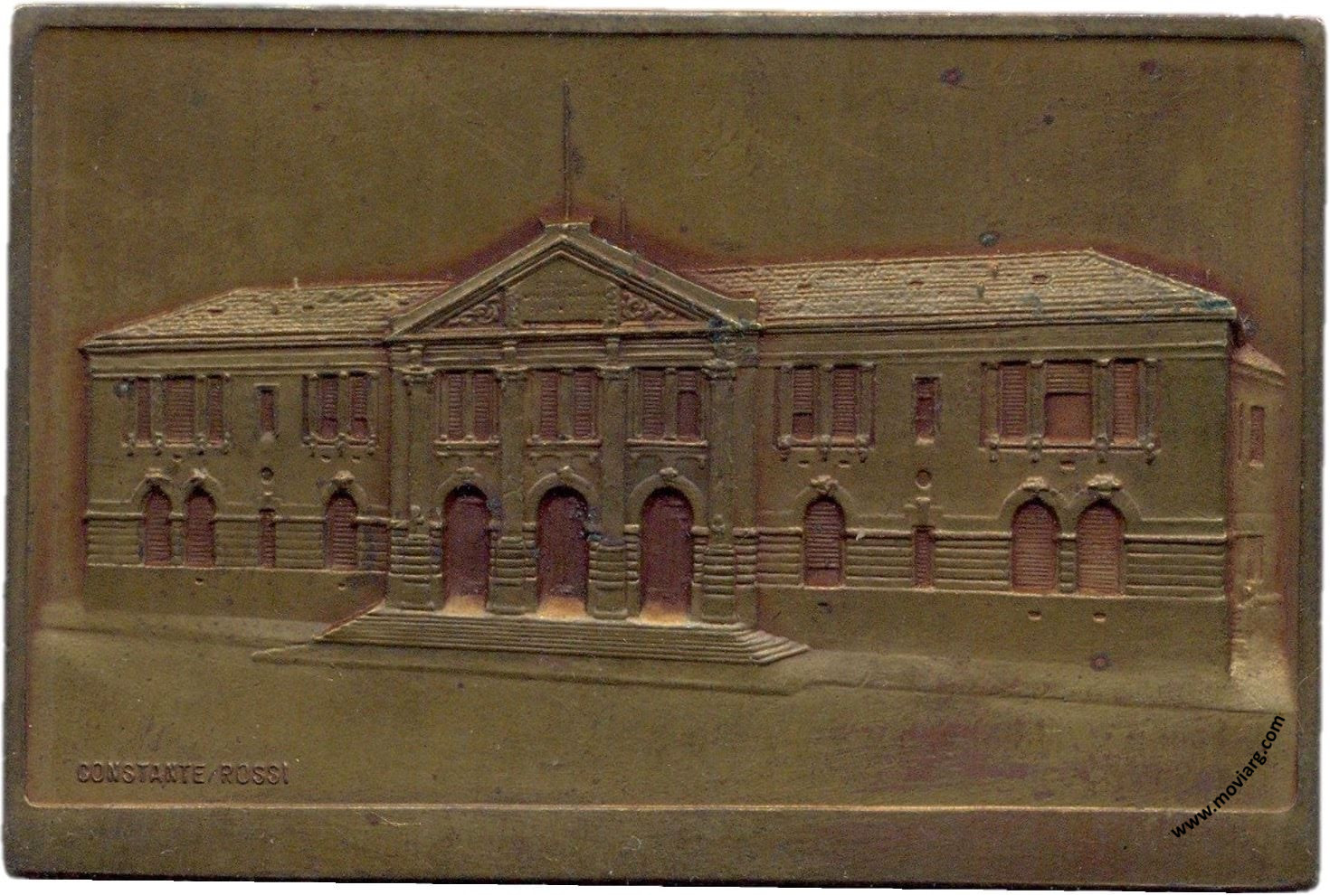 Anverso: Firma: CONSTANTE ROSSI Reverso: ESCUELA NORMAL DE MAESTRAS / DE CORRIENTES / PRESIDENTE DE LA NACIÓN / GENERAL AGUSTIN P. JUSTO / MINISTRO DE JUSTICIA É INSTRUCCIÓN PÚBLICA / DOCTOR MANUEL M. DE IRIONDO / MINISTRO DE OBRAS PÚBLICAS / DON MANUEL R. ALVARADO / SUBSECRETARIO DE OBRAS PÚBLICAS / DOCTOR NEREO GIMENEZ MELO / DIRECTOR GENERAL DE ARQUITECTURA / ARQUITECTO JOSÉ A. HORTAL / 1935 Referencia: | |