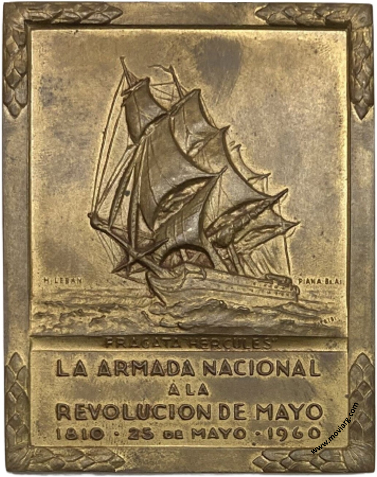 Anverso: LA ARMADA NACIONAL / A LA / REVOLUCION DE MAYO / 1810 · 25 DE MAYO · 1960. Firma: PIANA BS. AS. / H. LEBAN. Campo: FRAGATA HERCULES Reverso: PIRAMIDE DE MAYO / ERIGIDA : 6 ABRIL - 25 MAYO 1811 / REFORMADA : / 17 ABRIL 1856 - 27 ABRIL 1857 / TRASLADADA : 12 - 20 NOVIEMBRE 1912. Firma: (???) Referencia: | |