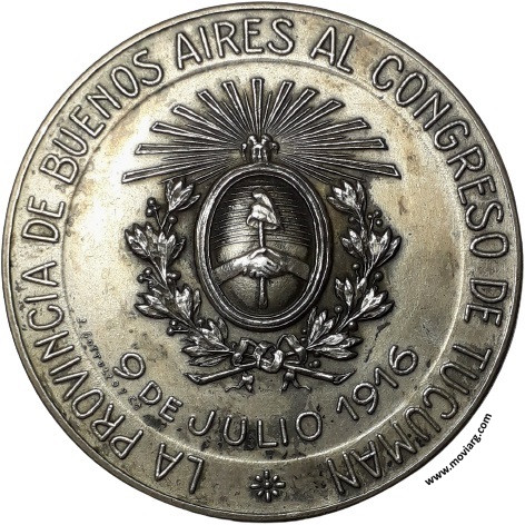 Anverso: LA PROVINCIA DE BUENOS AIRES AL CONGRESO DE TUCUMAN / 9 DE JULIO DE 1916. Firma: J. GOTTUZZO Y CA. Reverso: GLORIOSA DECLARACION / DE LA INDEPENDENCIA NACIONAL / TUCUMAN / 9 DE JULIO 1816 Referencia: | |