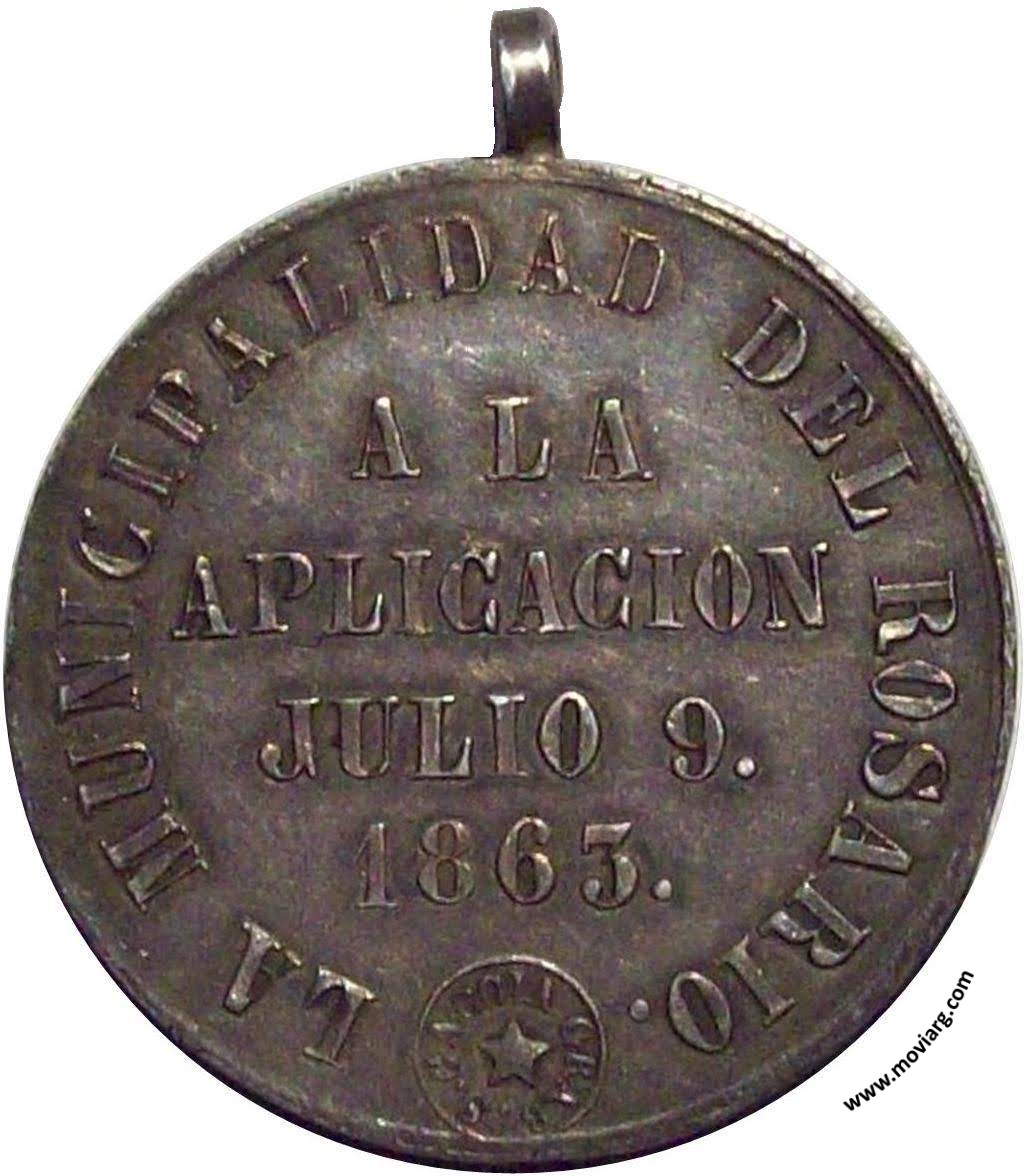 Anverso: 27 FEB 1812 Reverso: LA MUNICIPALIDAD DEL ROSARIO / A LA / APLICACION / JULIO 9. / 1863. Firma: S. CACCIA GRAB. Referencia: FERRARI-2 (SC) | |