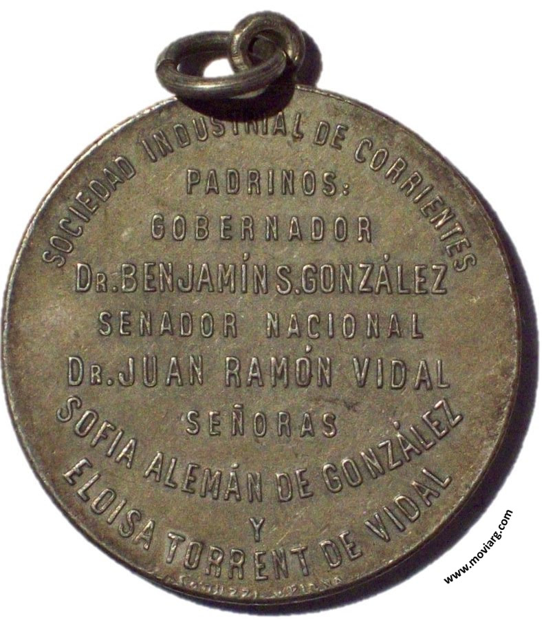 Anverso: COLOCACION DE LA PIEDRA FUNDAMENTAL DE / LA PRIMER FABRICA DE TANINO EN CORRIENTES / DE LOS SRES. BARANDA / KOCH Y ROLDAN / ENERO DE 1927 Reverso: SOCIEDAD INDUSTRIAL DE CORRIENTES / PADRINOS : / GOBERNADOR / DR. BENJAMÍN S. GONZÁLEZ / SENADOR NACIONAL / DR. JUAN RAMÓN VIDAL / SEÑORAS / SOFIA ALEMÁN DE GONZÁLEZ / Y / ELOISA TORRENT DE VIDAL. Firma: GOTTUZZO Y PIANA Referencia: | |