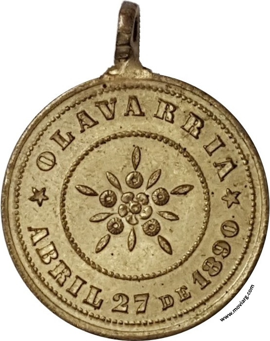 Anverso: OLAVARRIA / ABRIL 27 DE 1890 Reverso: COLOCACION / DE LA / PIEDRA / FUNDAMENTAL / DE LA / IGLESIA. Firma: P. & H. Referencia: | |