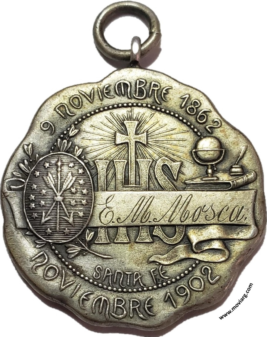 Anverso: COLEGIO DE LA INMACULADA / CONCEPCION / XL ANIVERSARIO / DE SU / FUNDACION Reverso: 9 NOVIEMBRE 1862 / NOVIEMBRE 1902 / IHS / [ E. M. MOSCA ] / SANTA FE Referencia: | |