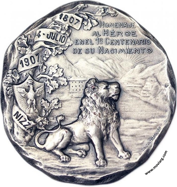 Anverso: GARIBALDI Reverso: HOMENAJE / AL HÉROE / EN EL 1R. CENTENARIO / DE SU NACIMIENTO. Campo: 1807 / 4 JULIO / 1907 / NIZZA. Firma: J. GOTTUZZO Y CA. Referencia: | |