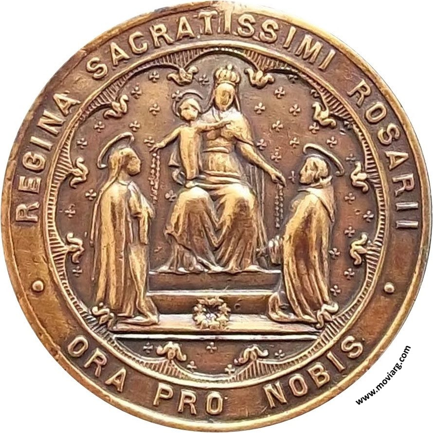 Anverso: REGINA SACRATISSIMI ROSARII / ORA PRO NOBIS Reverso: RECUERDO DE LA BENDICION DE LA CAPILLA DE N. S. DEL ROSARIO / DICIEMBRE 5 DE 1897 / EN EL COLEGIO DE LAS RELIGIOSAS DOMINICAS / BUENOS AIRES / ALMAGRO. Firma: ORZALI B. Y C. Referencia: | |