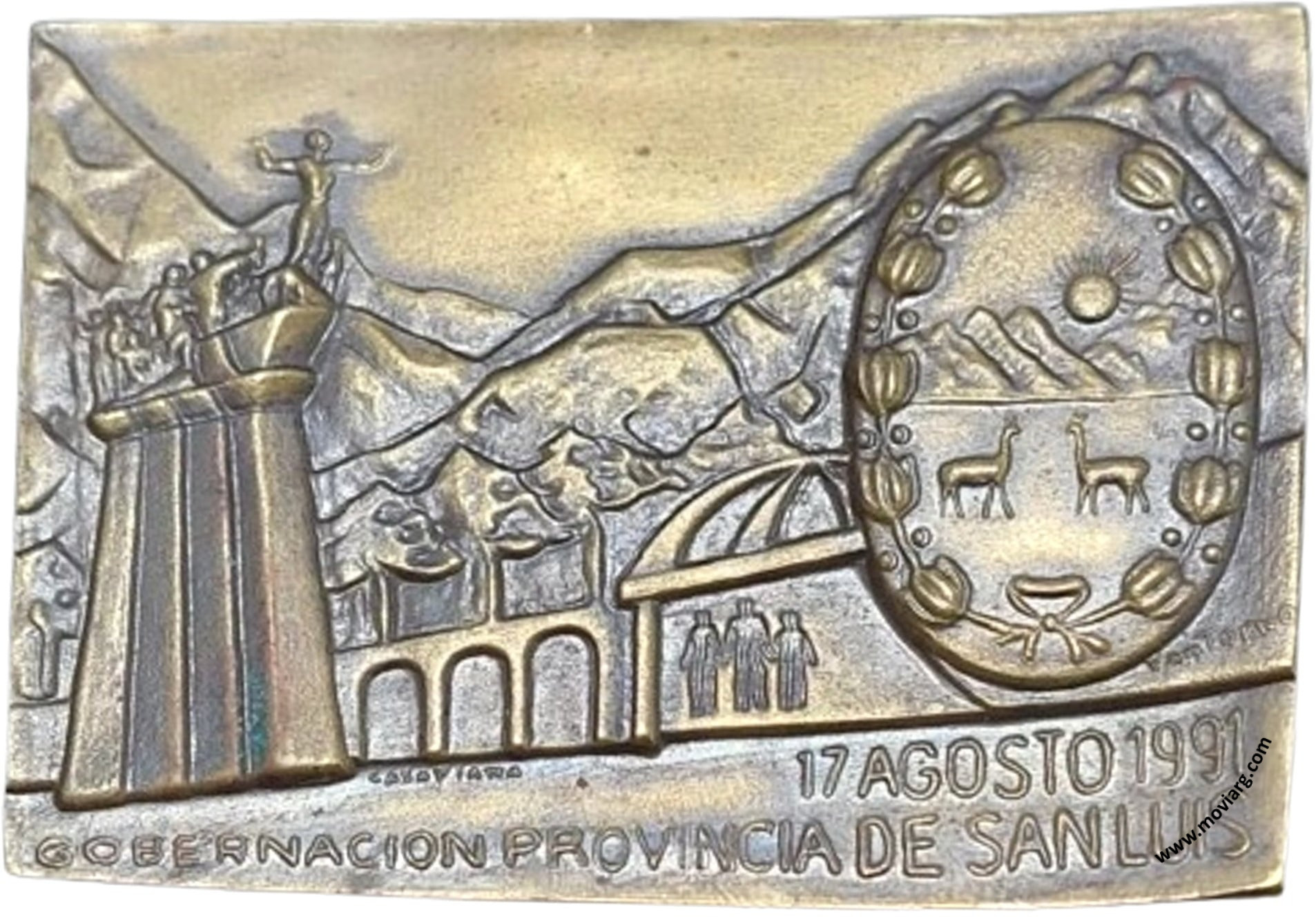 Anverso: MONUMENTO AL PUEBLO PUNTANO / DE LA INDEPENDENCIA. Firma: YANTORNO Reverso: 17 AGOSTO 1991 / GOBERNACION PROVINCIA DE SAN LUIS. Firma: YANTORNO / CASA PIANA Referencia: | |