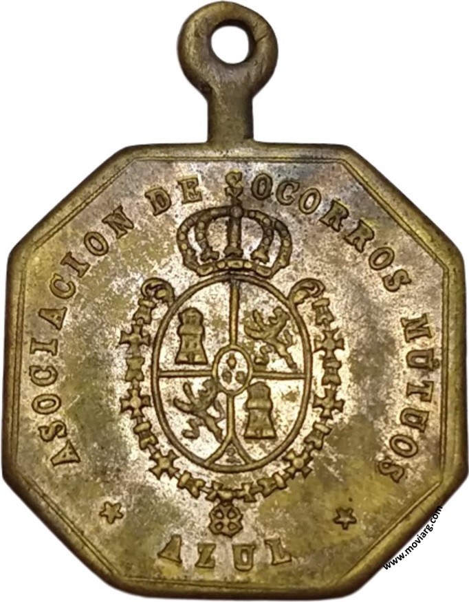 Anverso: ASOCIACION DE SOCORROS MUTUOS / AZUL Reverso: ROMERIAS ESPAÑOLAS / 25 / DICIEMBRE / 1889 / 8° ANIVERSARIO Referencia: | |