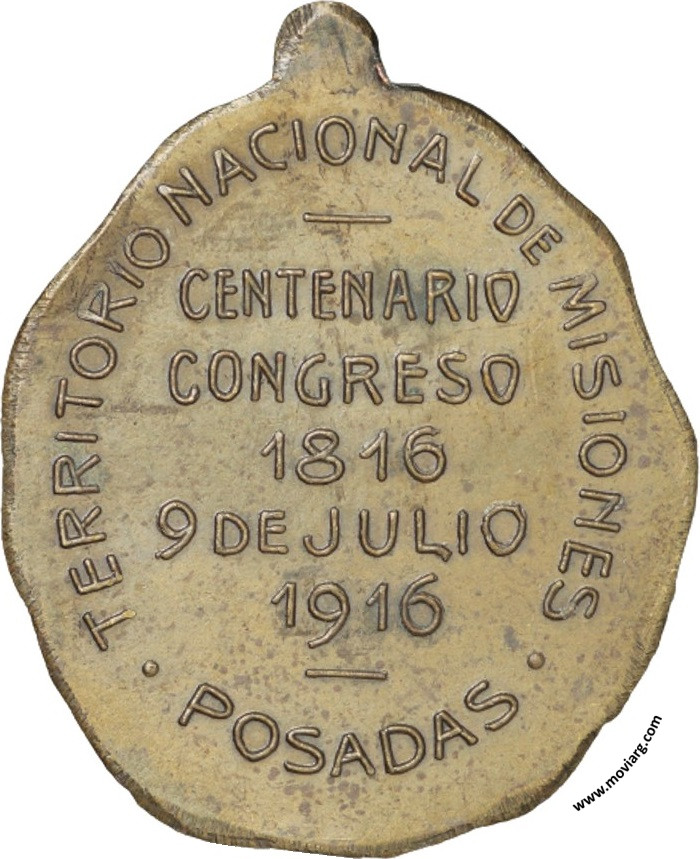 Anverso: Firma: GOTTUZZO Y CA. Reverso: TERRITORIO NACIONAL DE MISIONES / POSADAS / CENTENARIO / CONGRESO / 1816 / 9 DE JULIO / 1916 Referencia: | |