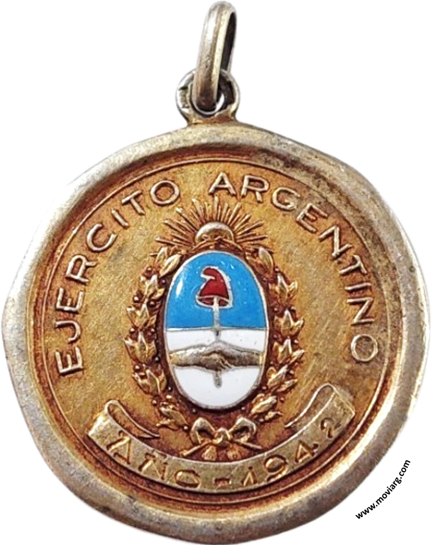 Anverso: EJERCITO ARGENTINO / [ AÑO - 1942 ] Reverso: SUS CAMARADAS DEL REGIMIENTO / 5 / [ STE. ] AL [ RVA. ] / [ ENRIQUE M. ROJO ] Referencia: | |