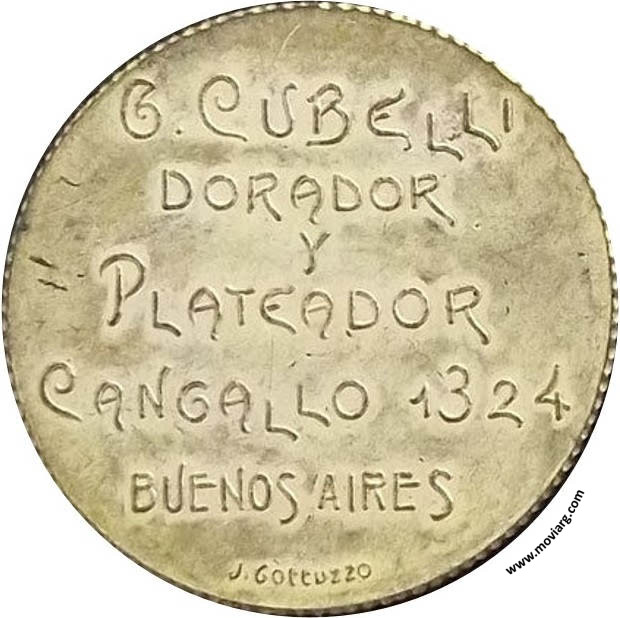 Anverso: 1873 - 1903 Reverso: G. CUBELLI / DORADOR / Y / PLATEADOR / CANGALLO 1324 / BUENOS AIRES. Firma: J. GOTTUZZO Referencia: | |